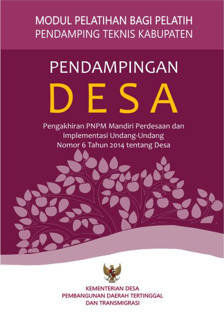 Direktorat Jenderal Pembangunan dan Pemberdayaan Masyarakat Desa Kementerian Desa Pembangunan Daerah Tertinggal dan Transmigrasi (Kemendesa PDTT) telah mengembangkan modul pelatihan bagi pelatih penyegaran pendamping teknis kabupaten melalui serangkaian kajian kebutuhan pelatihan dengan melibatkan pemangku kepentingan lain baik kalangan praktisi, aktivis, akademisi dan peneliti. Sesuai hasil analisis kebutuhan pelatihan menunjukkan bahwa kondisi pendamping desa menunjukkan tingkat pemahaman yang berbeda tentang kebijakan pengakhiran PNPM Mandiri Perdesaan dan implementasi Undang-Undang Desa sesuai dengan latar belakang, karakteristik wilayah, dan kondisi sosial yang ada.